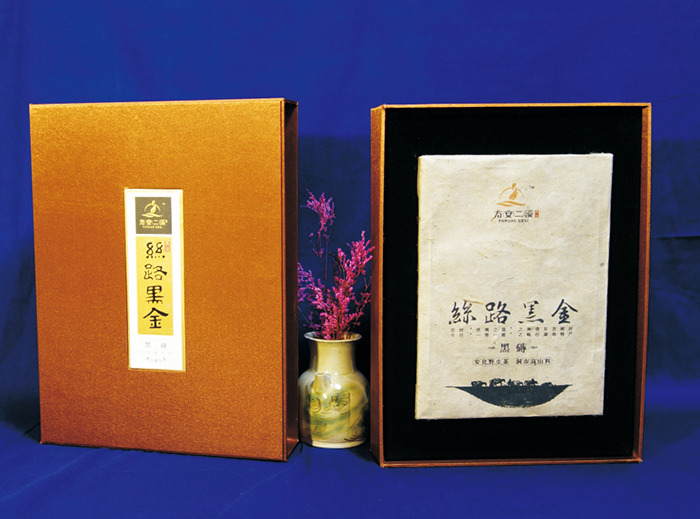絲路黑金?天尖(珍藏版)的包裝采用長沙銅官古磘生產(chǎn)的陶罐,因而是兩項國家級非物質(zhì)文化遺產(chǎn)“珠聯(lián)璧合”的產(chǎn)物。